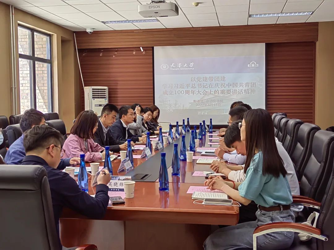 2022年5月13日下午,财务处党支部联合自动化学院机关党支部在卫津路校区26楼D区212会议室召开“以党建带团建,学习习近平总书记在庆祝中国共青团成立100周年大会上的重要讲话精神”专题座谈会。财务处、自动化学院支部党员代表及部分学生代表共22人参加会议。会议由自动化学院党委副书记何立乾主持。