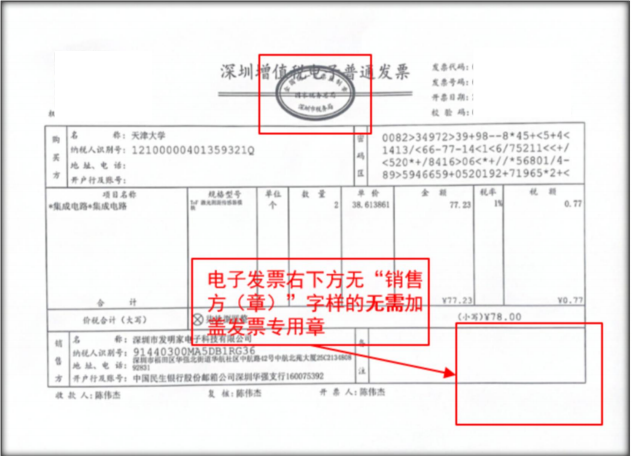 类型A:电子发票右下方有“销售方(章)”字样的需要加盖发票专用章。