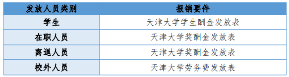 《天津大学科研项目劳务酬金发放管理暂行办法》(天大校财〔2017〕13号)、《天津大学劳务酬金发放管理暂行办法》(天大校财〔2017〕18 号)、《天津大学关于调整硕士、博士学位论文评阅与答辩费用标准的通知》(天大校研〔2021〕7号)、《天津大学外国文教专家经费管理暂行办法》(天大校财〔2016〕16号)等。