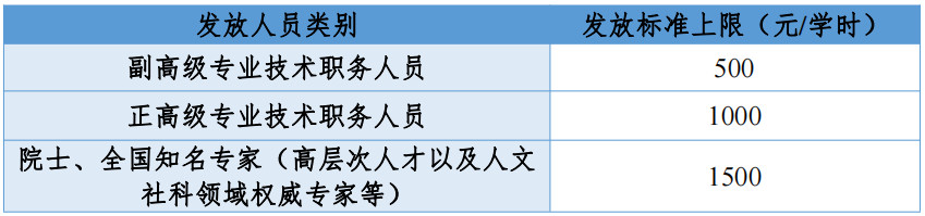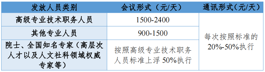 专家咨询的劳务酬金发放执行以下标准(税后):