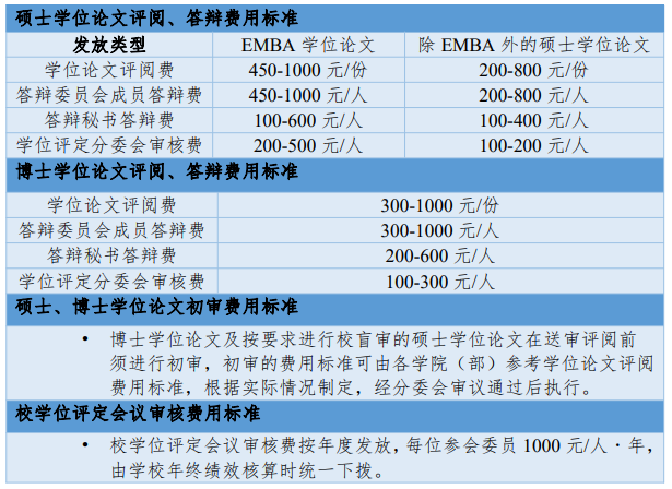 (7)发放学位论文评阅、答辩、初审、校学位评定会议审核费用的标准是什么?