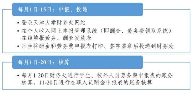 按照新个人所得税法规定,结合我校工资发放特点,劳务酬金领取时间要求如下: