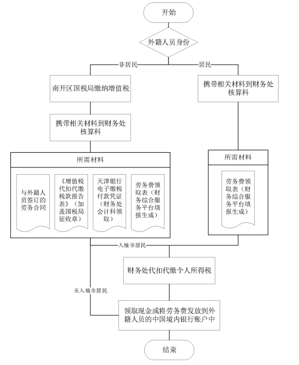 (3)到南开区国税局缴纳增值税所需材料、注意事项等信息详见《关于外籍人员提供劳务缴纳增值税和个人所得税流程调整的通知》(天津大学办公网-协同办公-消息处理-2018年4月27日财务处发送),如有疑问可咨询财务处综合管理科,办公电话:27404872。