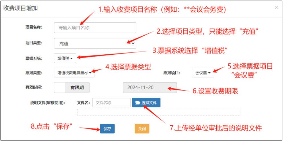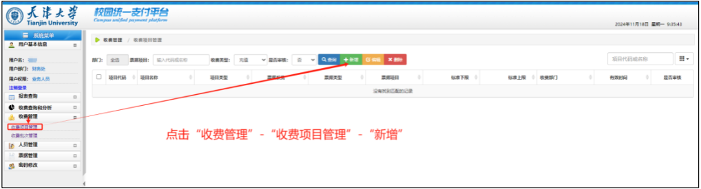 按顺序选择“收费管理”-“收费项目管理”-“新增”