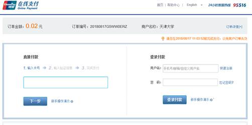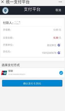6. 根据提示完成银联在线支付,支付完成后返回支付平台