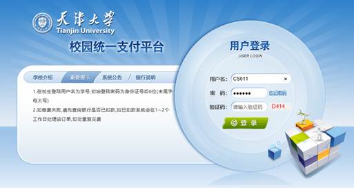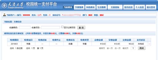 1.登录“天津大学校园统一支付平台”(网址https://payment.tju.edu.cn/xysf/)