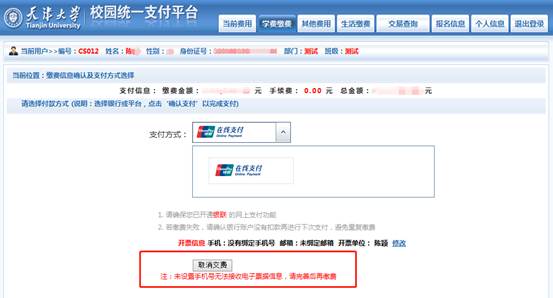 (如未填写手机号和邮箱,会出现无法交费的情况,需完善信息后再交费)