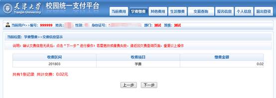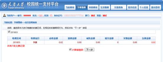 4.根据提示选择缴费项目,点击下一步进行缴费。