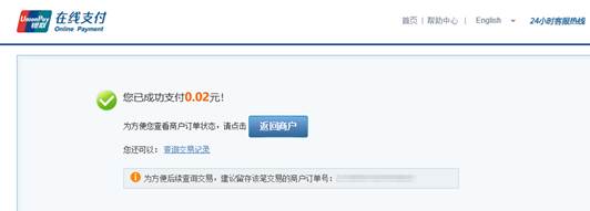 6. 根据提示完成银联在线支付,支付完成后返回支付平台。