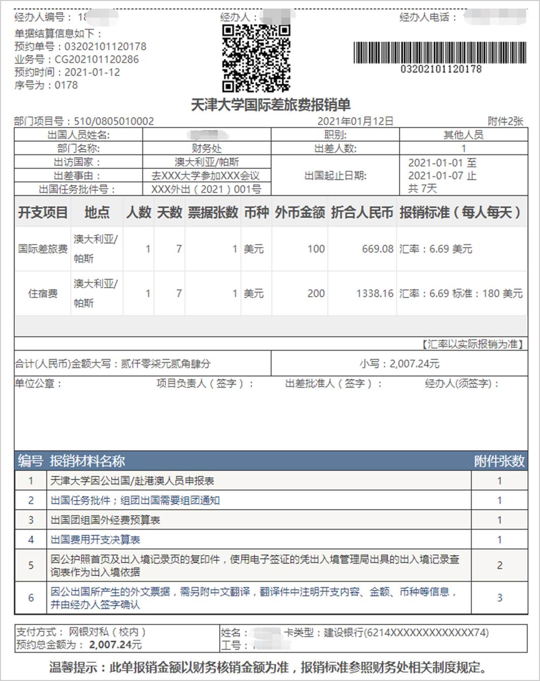 7. 将打印出来的预约单,签字盖章,和发票等附件一起,投递至学院或财务处投递箱。