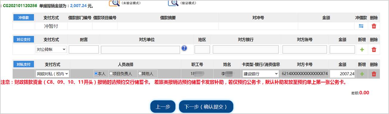 4. 选择支付方式,此步骤相关操作参考日常报销部分;