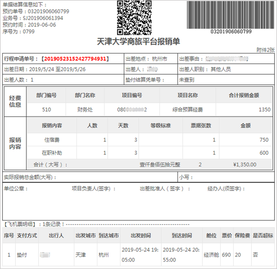 填写完支付方式后,打印预约单,签字盖章后和其他附件材料一起投递至学院或财务处投递箱。