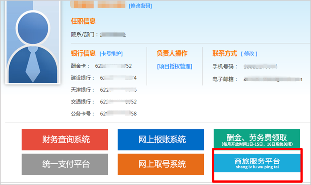 进入财务网上综合服务平台,选择“商旅服务平台”。
