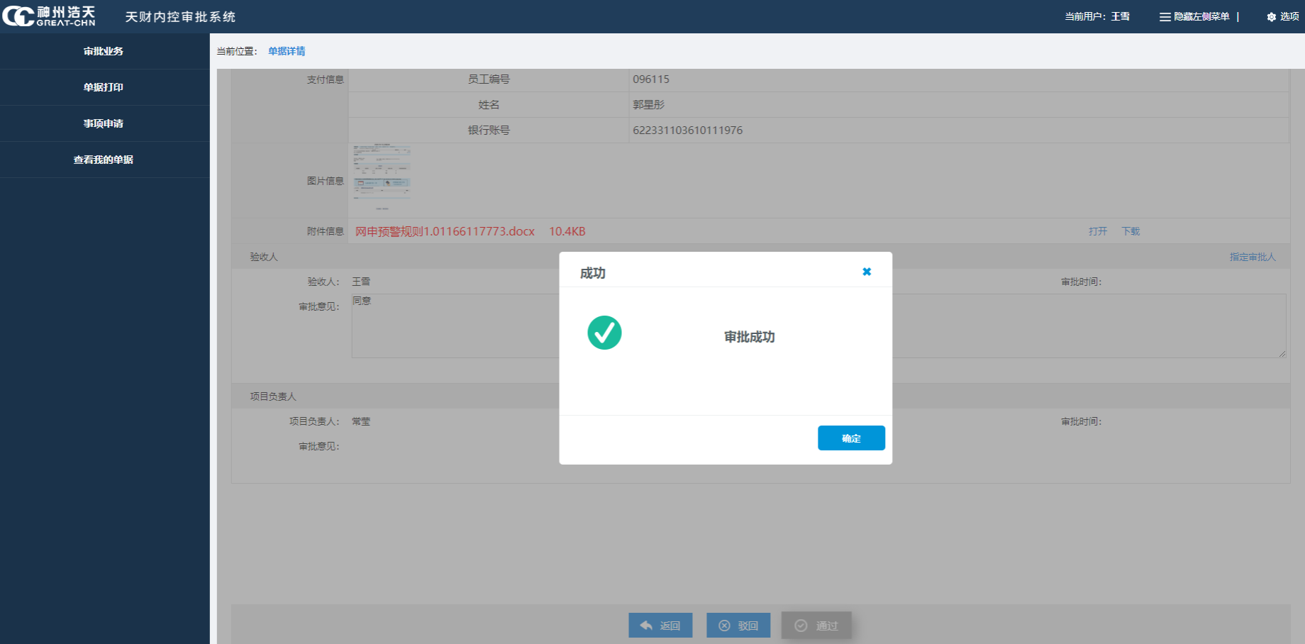 六、项目负责人完成审批后,财务系统自动接收,分配给财务制单人员。